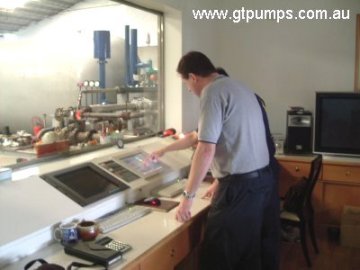 This assembly is then placed on a special turbo balancer and is spun up. Material is removed as required. This operation may be repeated a number of times before the turbo is balanced correctly. Once balanced the assembly is fitted into the centre bearing housing with whatever seals and o'rings are required and the turbine and compressor housings are fitted. The balancer shown is an older Heins (USA) machine we use a Schenck (Germany) balancer. |
